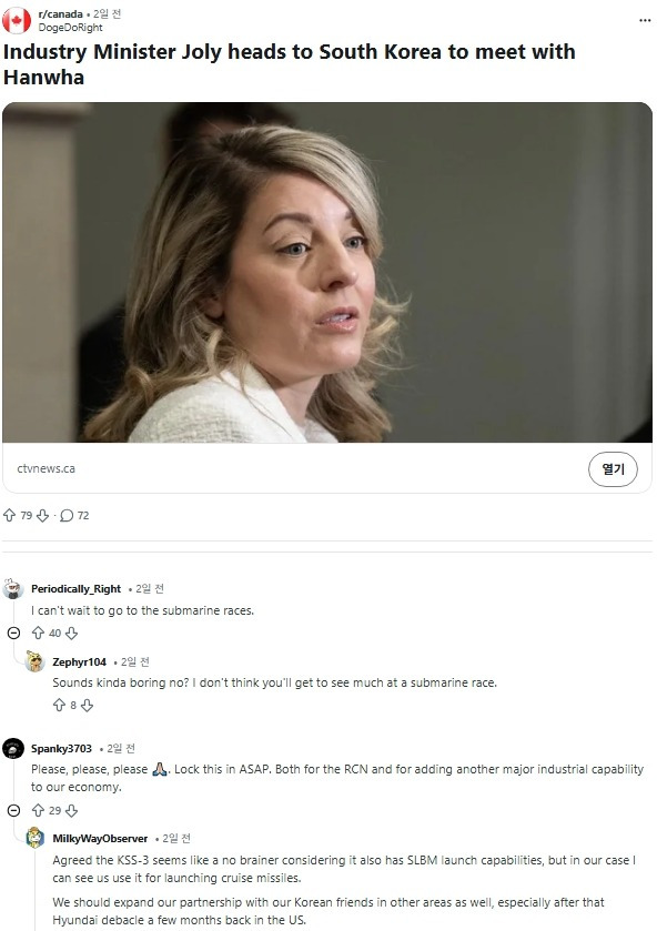 캐나다 잠수함이 운용 되는 모습을 빨리 보고 싶어.